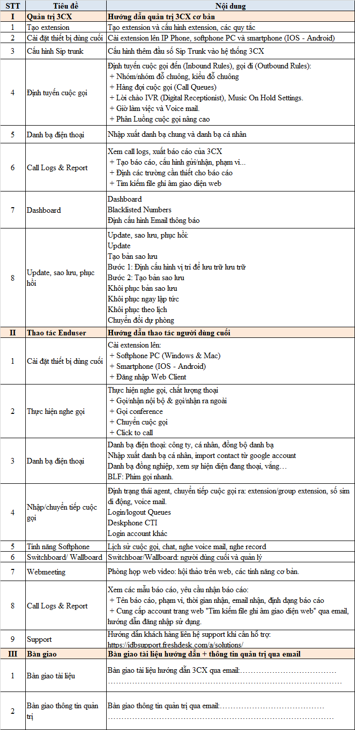 Tiếp nhận Hướng dẫn, bàn giao 3CX :